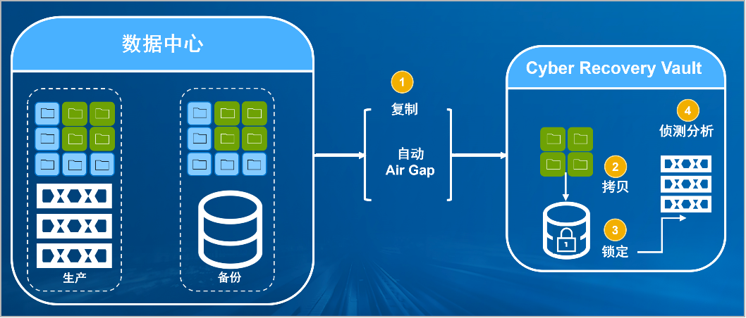 leyu.樂(lè)魚防勒索病毒方案將生產(chǎn)中心備份數(shù)據(jù)復(fù)制到Vault區(qū),復(fù)制后網(wǎng)絡(luò)自動(dòng)斷開實(shí)現(xiàn)彈性隔離。Vault區(qū)的數(shù)據(jù)快速拷貝,并對(duì)拷貝版本加鎖(在鎖定期數(shù)據(jù)不允許刪除和修改)。Vault沙箱內(nèi)對(duì)拷貝版本進(jìn)行掃描分析,驗(yàn)證數(shù)據(jù)是否完好。